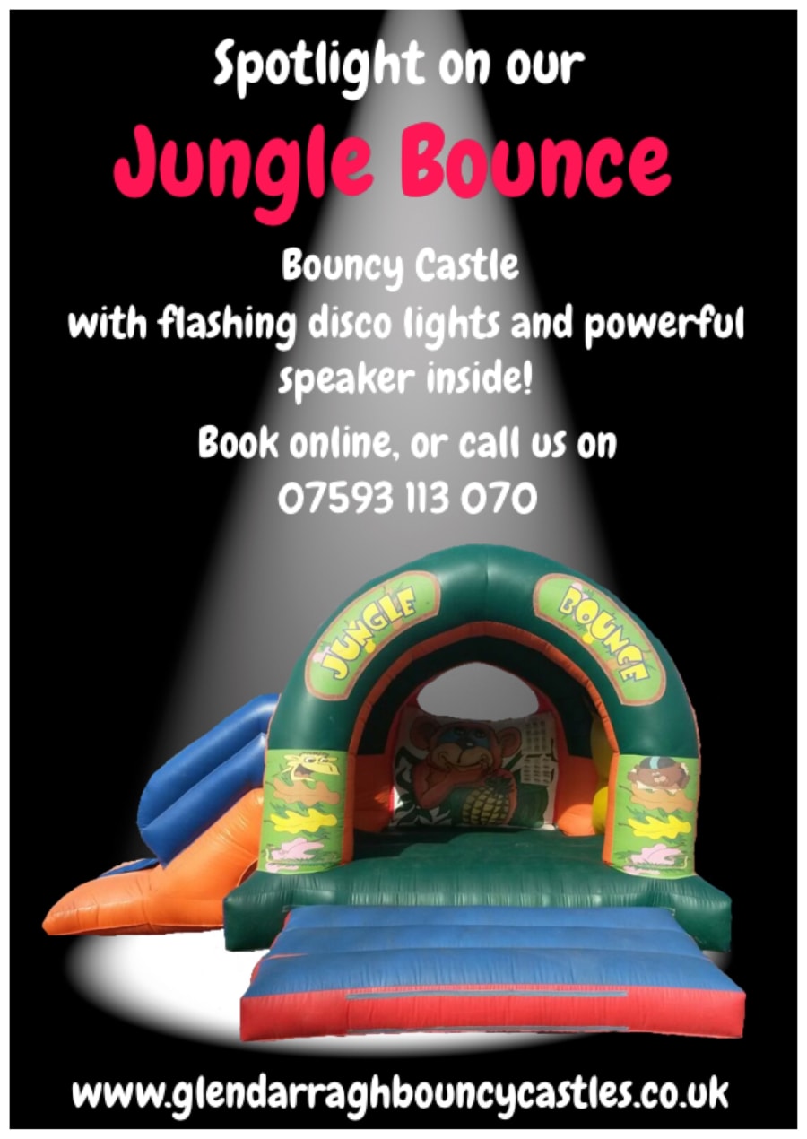 This Jungle bounce and slide Bouncy Castle fits in well with our Jungle theme Toddlers Soft Play, and available for hire in Newtownards, Bangor, Dundonald, Holywood, Donaghadee, Ards Peninsula, Comber and surrounding areas