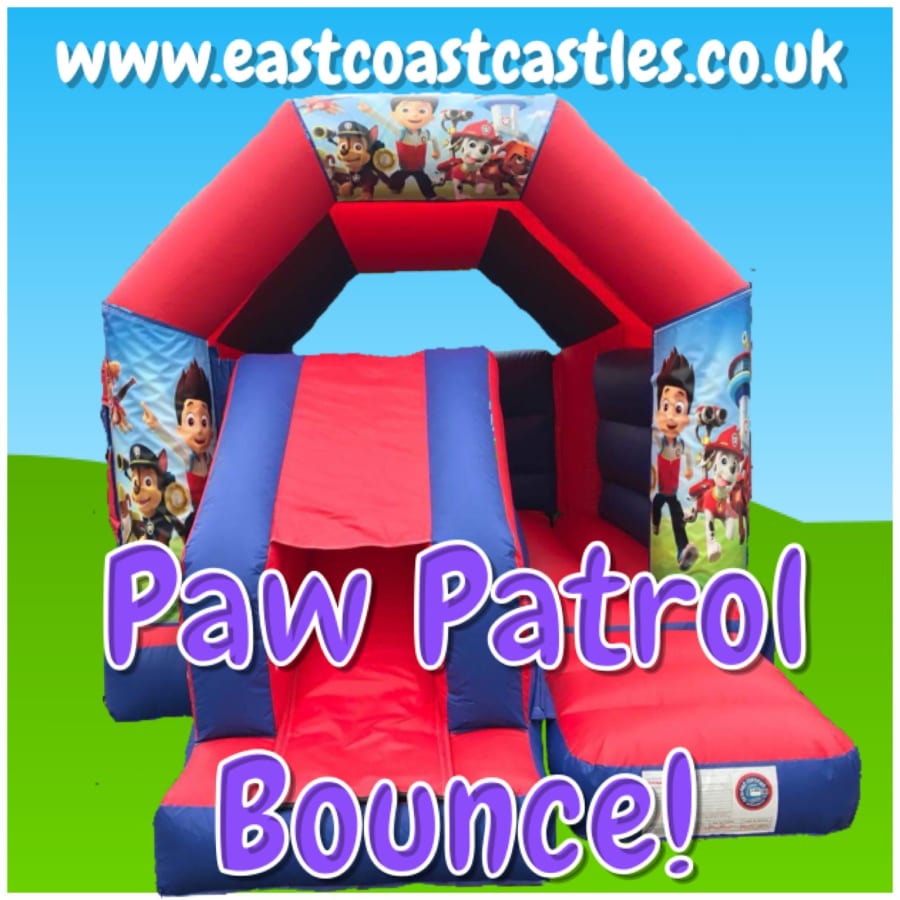 This Paw Patrol Theme can come on a standard Bouncy Castle or a Bouncy Castle with a Slide!